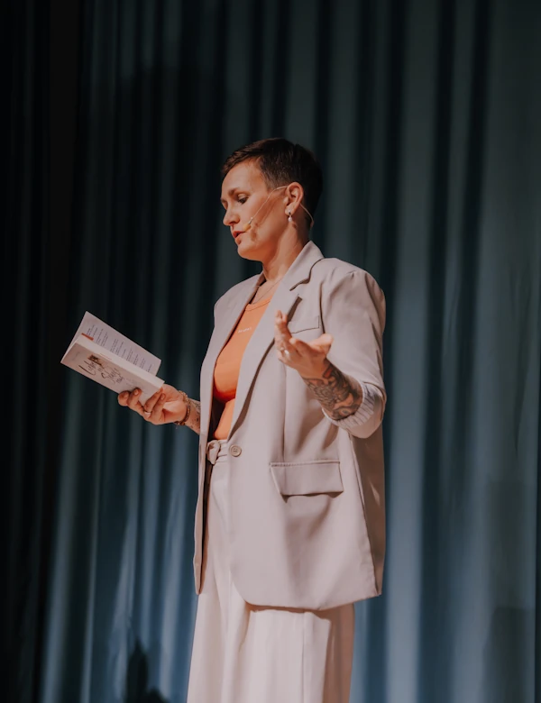 Als Autorin und Bühnenfrau verbinde ich persönliche Erfahrungen mit literarischer Sprache, Haltung und Tiefe. Meine Arbeit richtet sich an Menschen, die bereit sind, genauer hinzuschauen – im eigenen Leben und in unserer Gesellschaft.